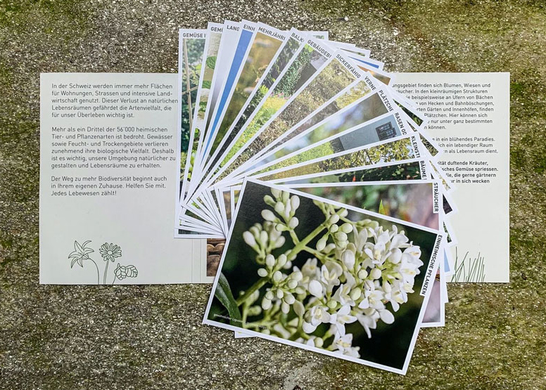 Mit wenig Aufwand blühende und lebendige Räume gestalten lassen. Die Karten sind am Schalter der Gemeindeverwaltung erhältlich und können auch online heruntergeladen werden. |